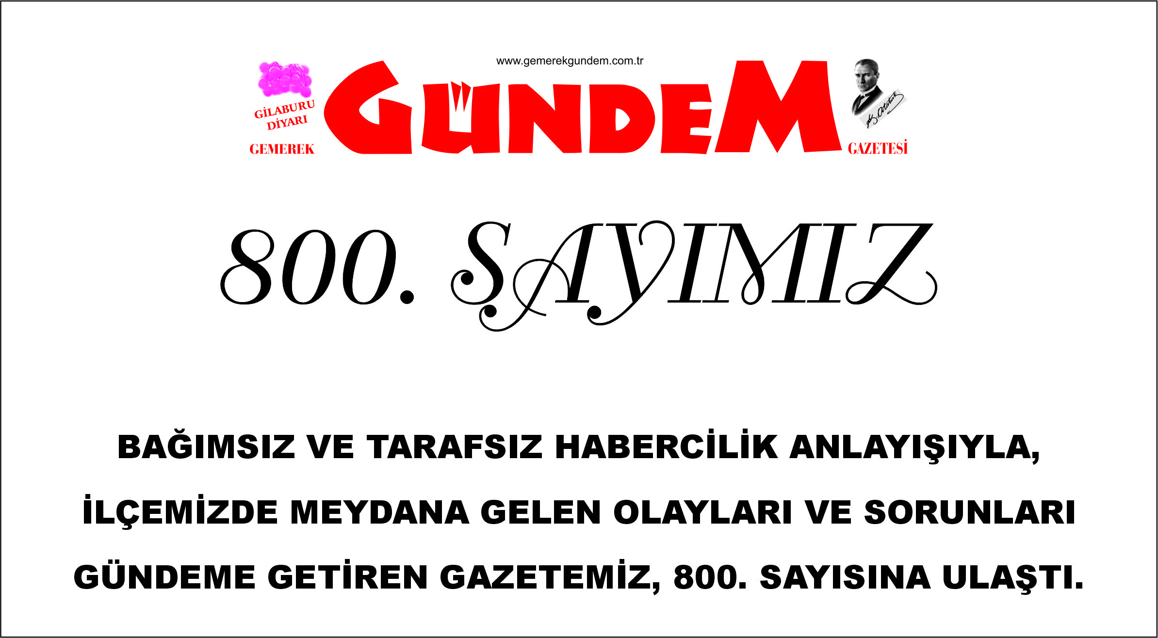 BAĞIMSIZ VE TARAFSIZ HABERCİLİK ANLAYIŞIYLA, İLÇEMİZDE MEYDANA GELEN OLAYLARI VE SORUNLARI GÜNDEME GETİREN GAZETEMİZ, 800. SAYISINA ULAŞTI.